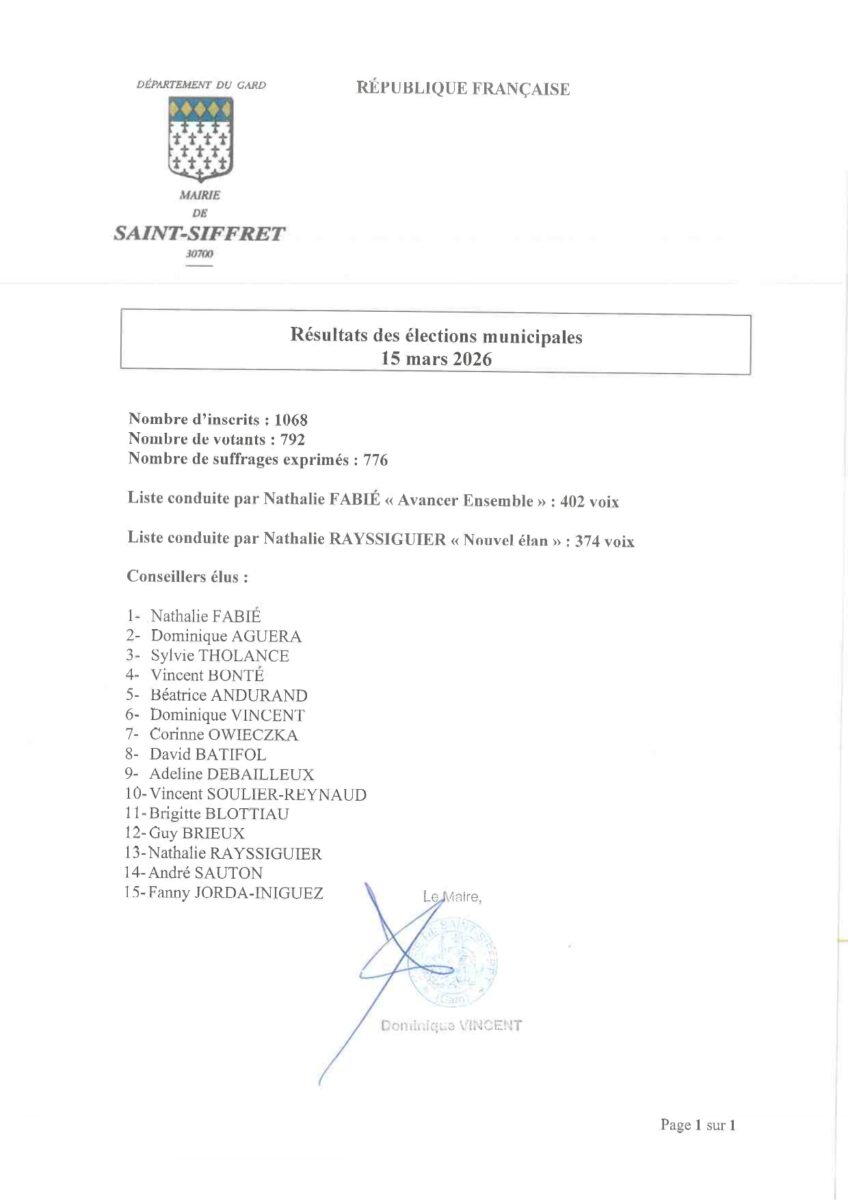 🗳️Résultats Élections Municipales Saint-Siffret🗳️