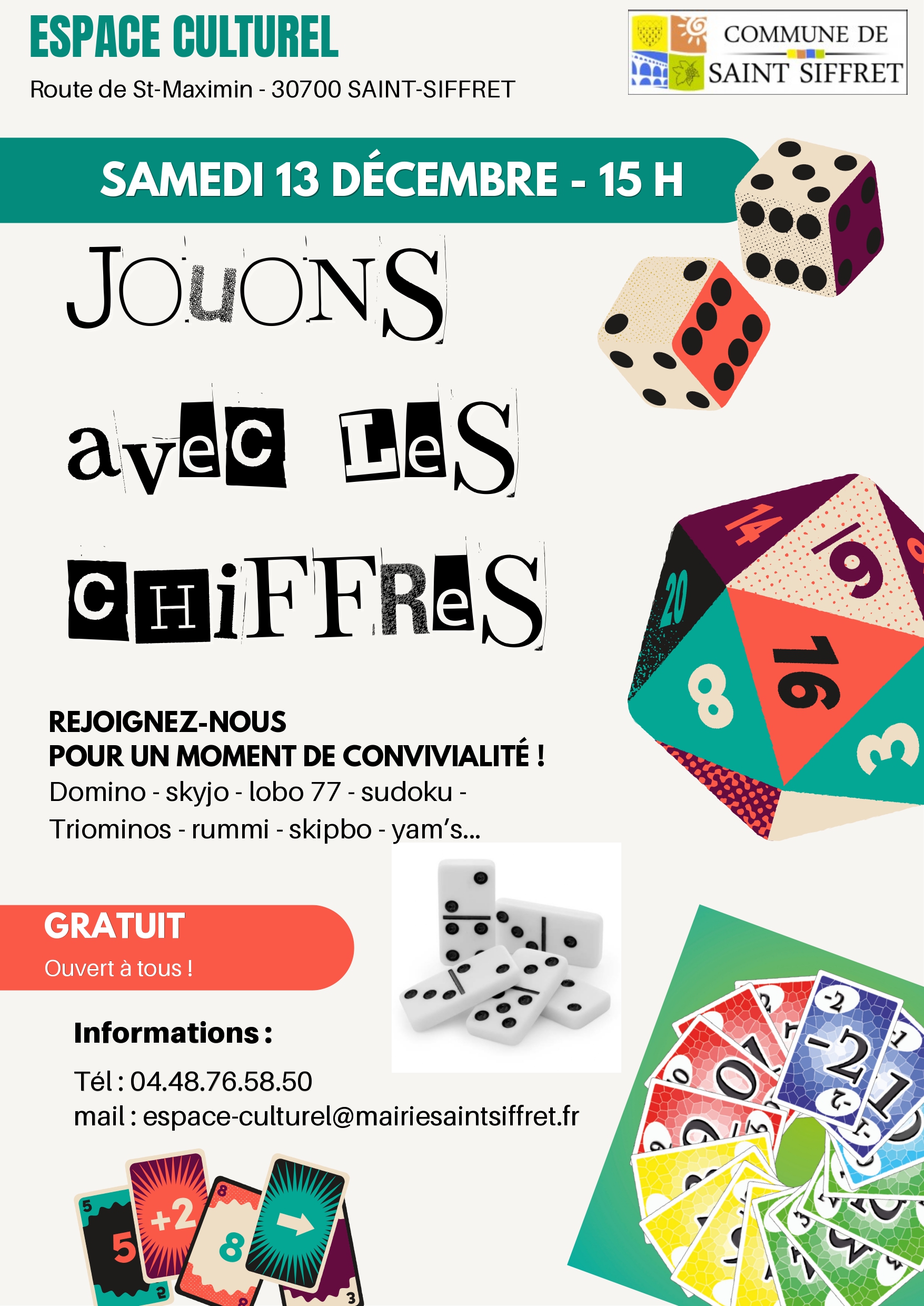 🎲 JOUONS AVEC LES CHIFFRES ! 🔢 Envie d’un moment convivial autour des jeux ?👉 Rendez-vous samedi 13 décembre à 15h à l’Espace Culturel de Saint-Siffret […] |