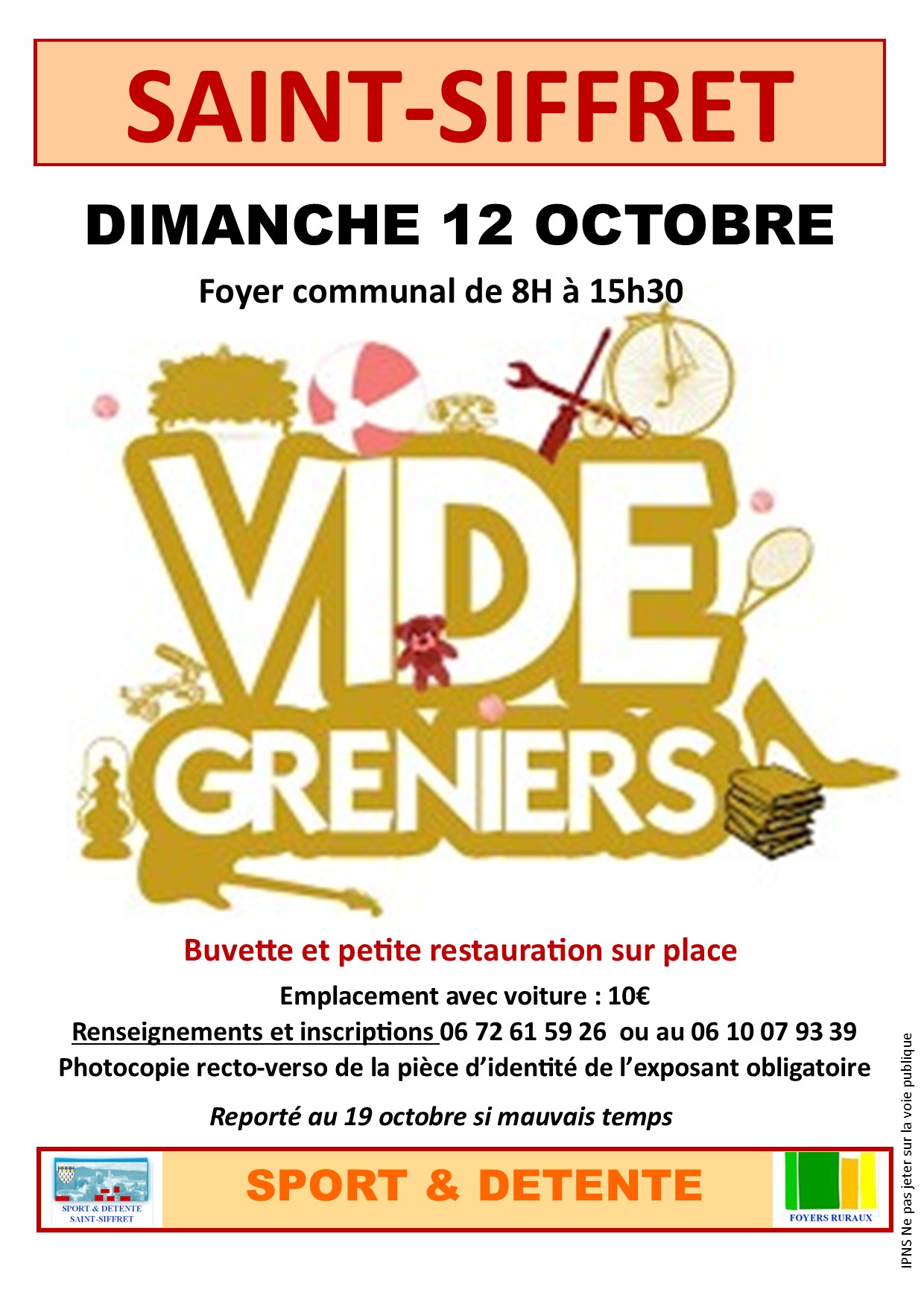 Buvette et petite restauration sur place Renseignements et inscriptions : 06 72 61 59 26 ou 06 10 07 93 39 10 € l'emplacement