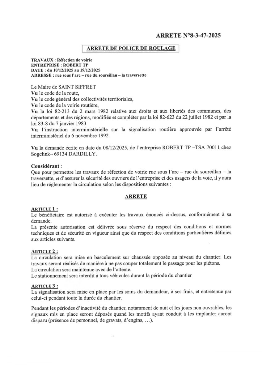 ARRETE DE POLICE DE ROULAGE